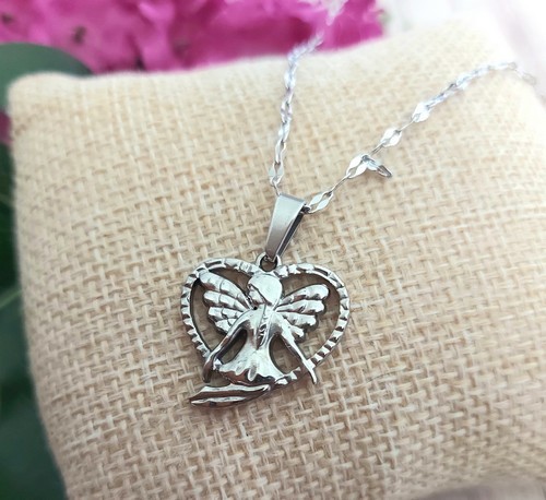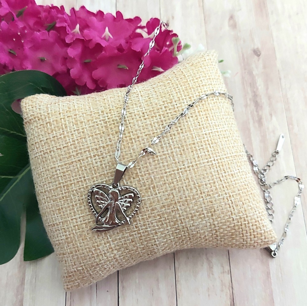 Pendentif coeur avec un ange en acier inoxydable 1,5 cm
