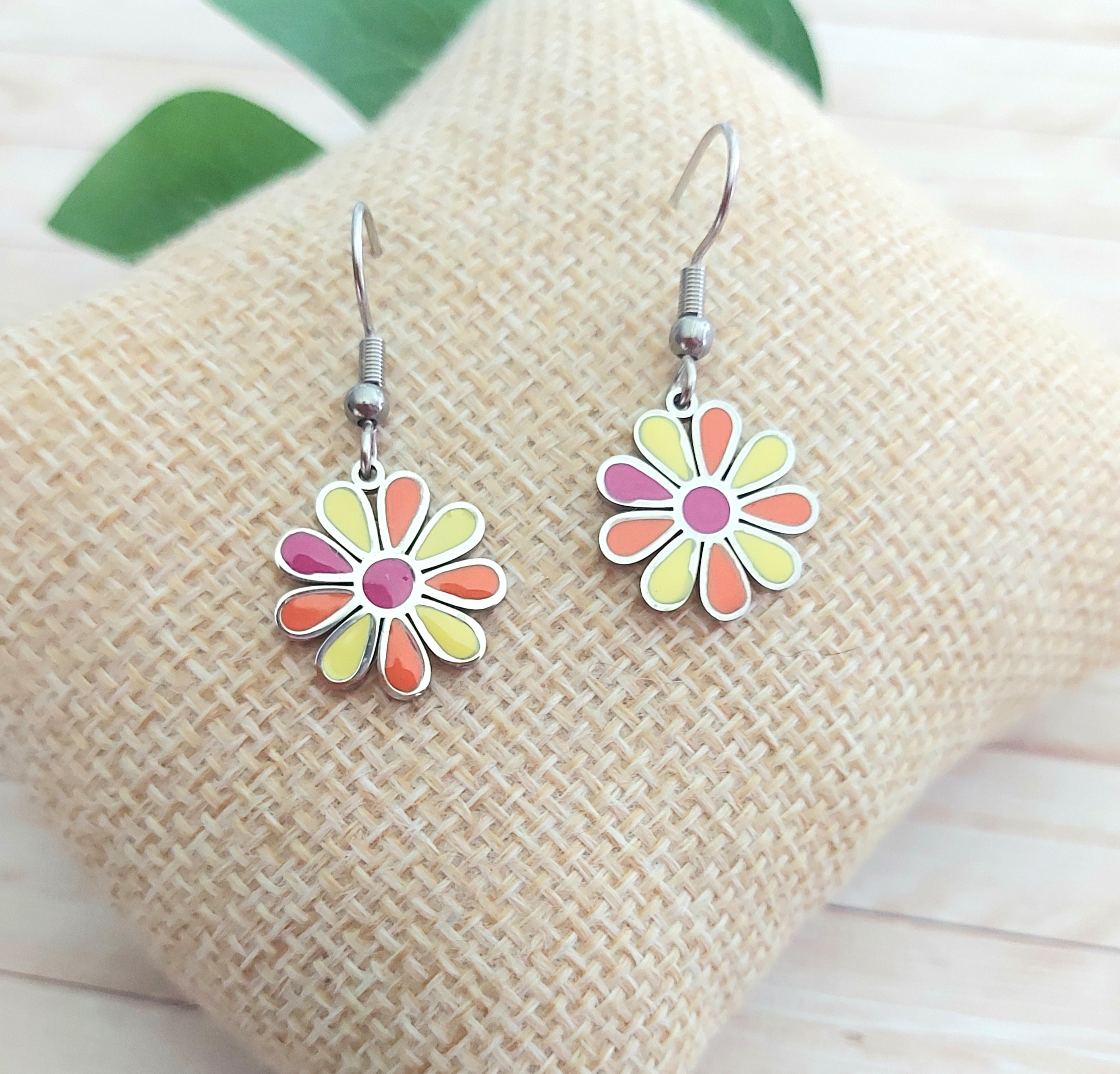 Boucles d'oreilles "marguerites" multicolores