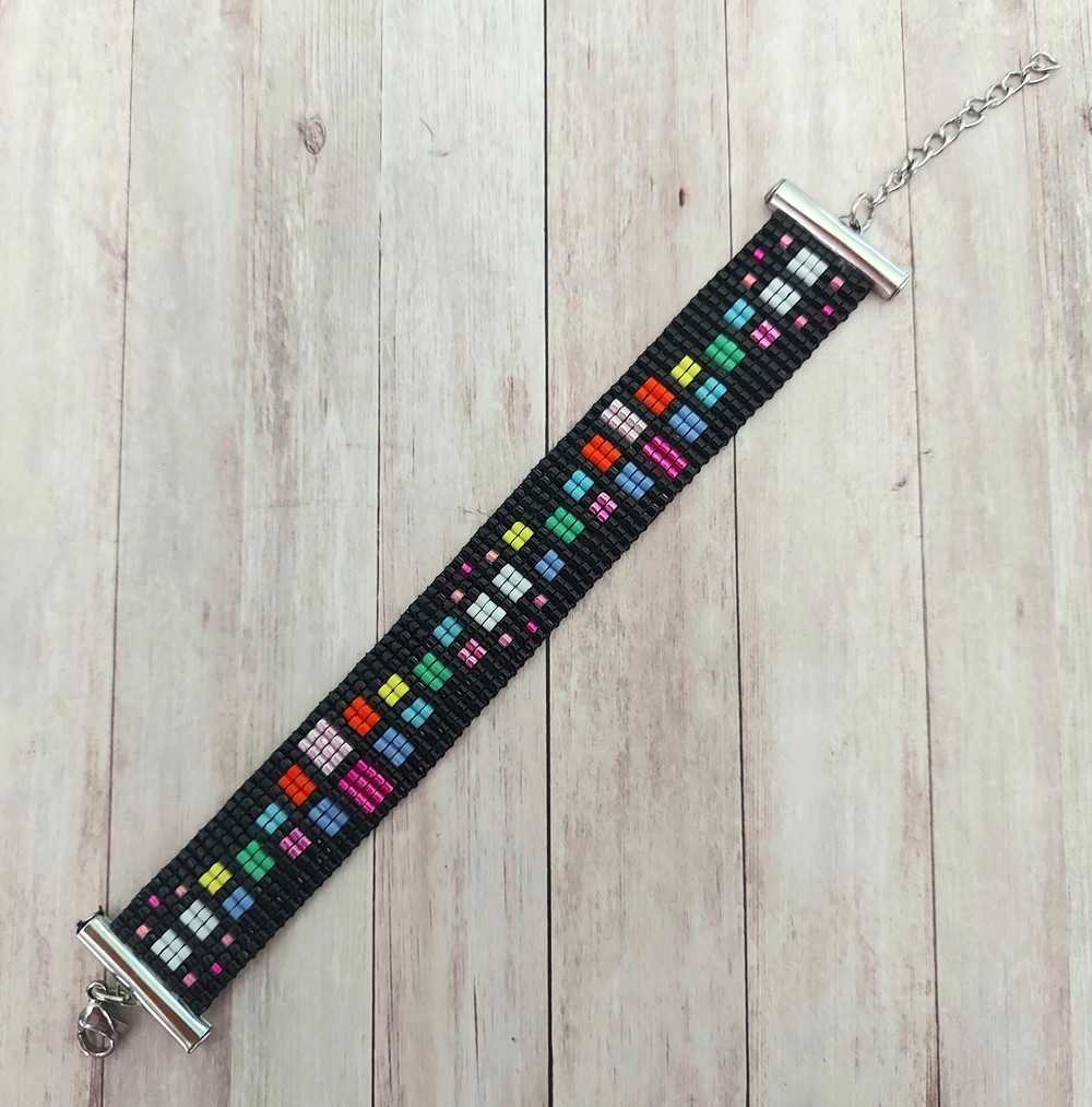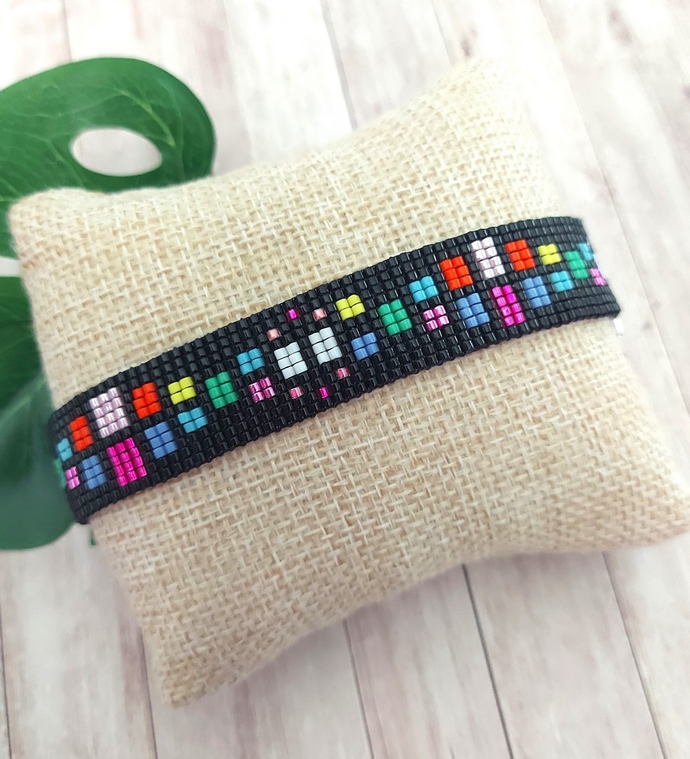 Bracelet tissé par mes soins avec des petites perles japonaises en verre de forme cylindriques et régulières appelées