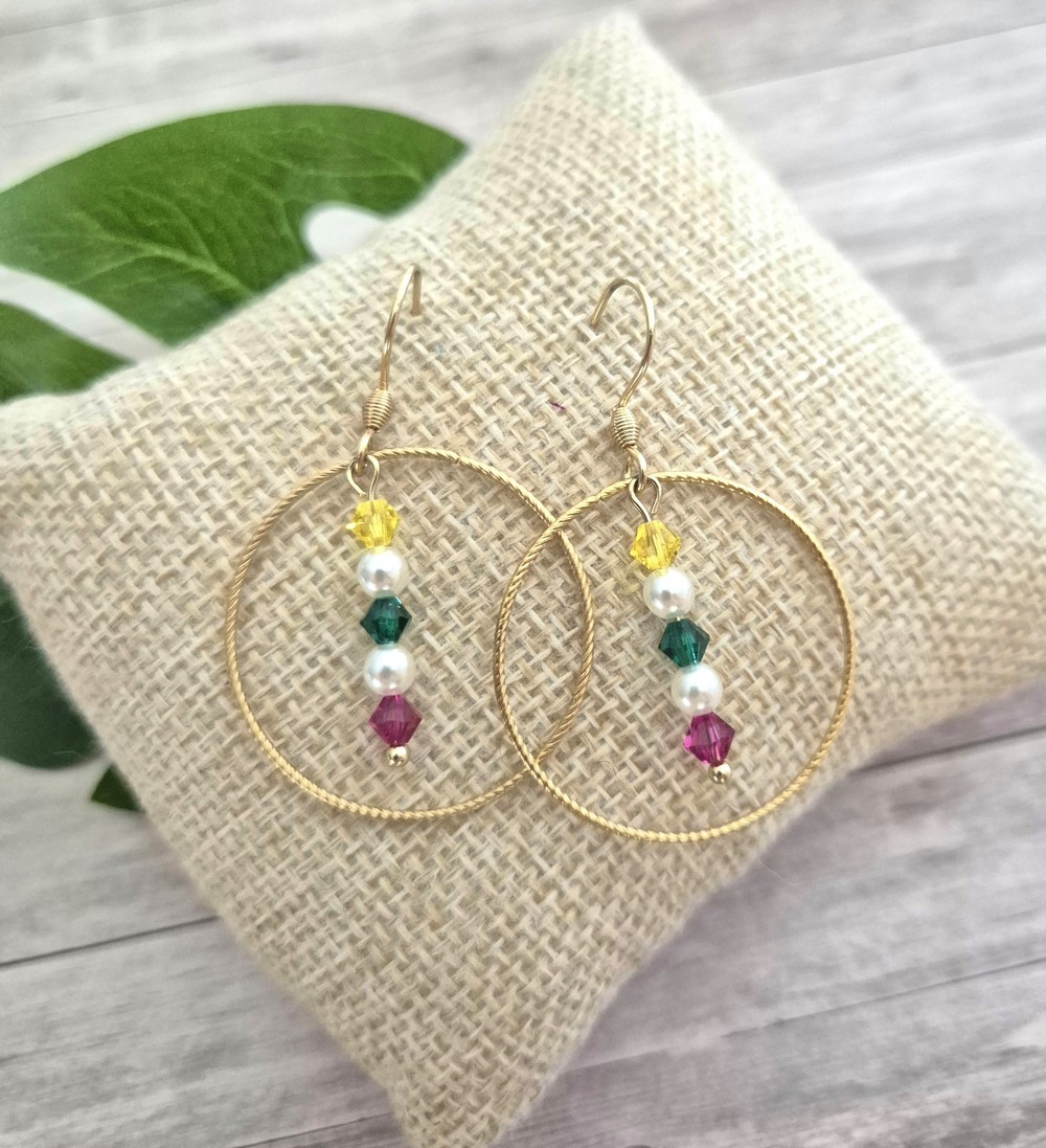 100% acier inoxydable doré avec des perles en cristal de verre (jaune/vert/fushia) et perles blanches nacrées