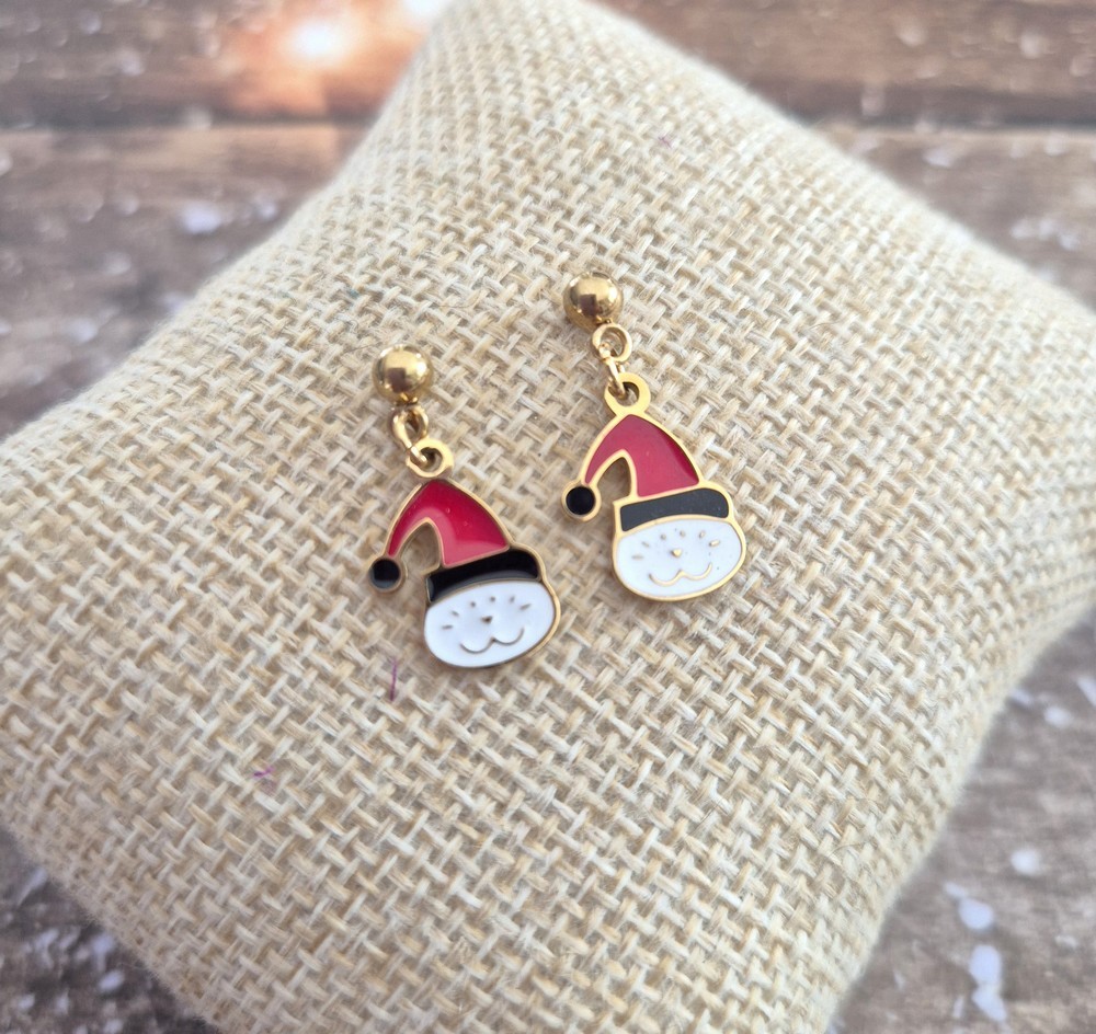 - Petits pendentifs chats de noël en acier inoxydable émaillé