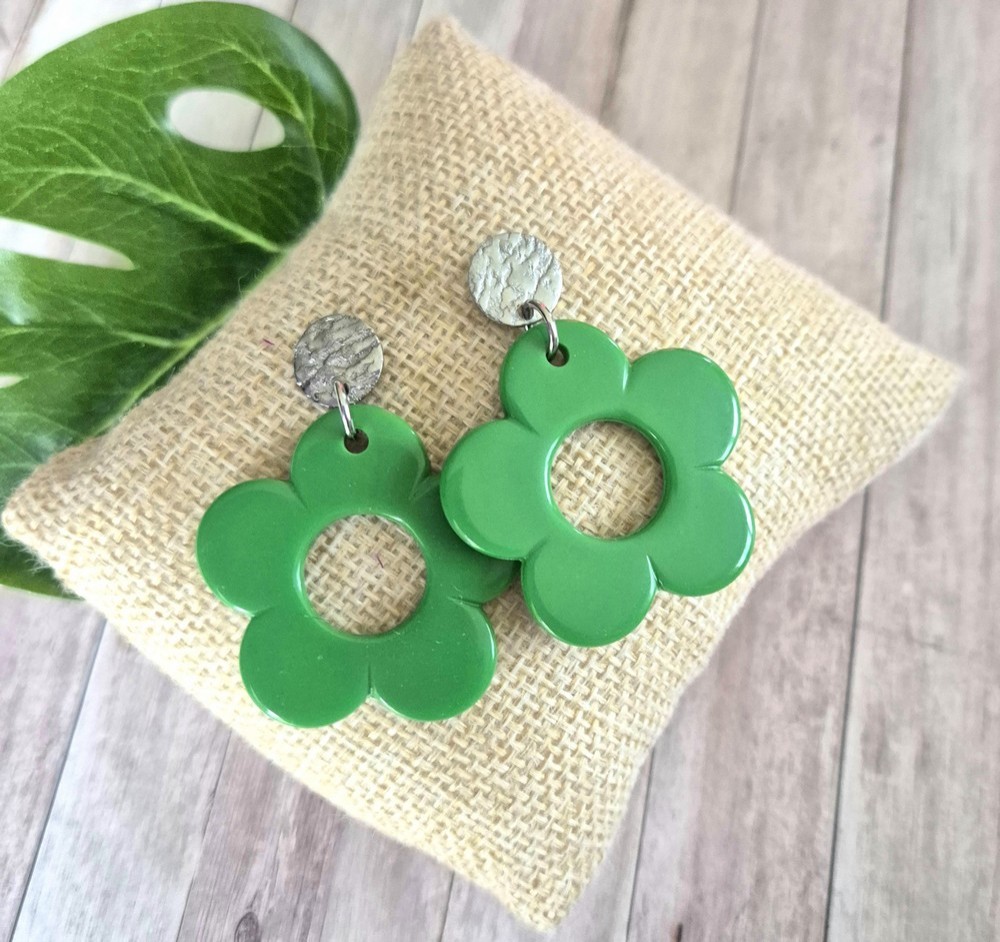 Boucles d'oreilles fleurs vertes
