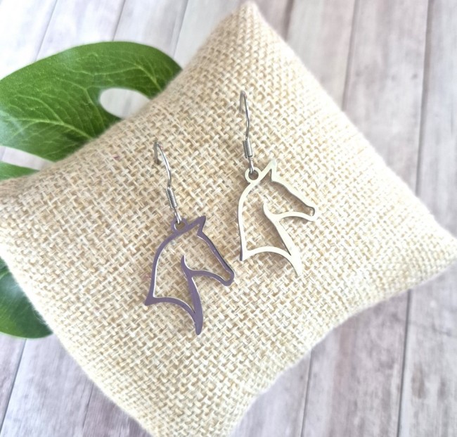 Boucles d'oreilles tête de cheval - 100% acier inoxydable argenté