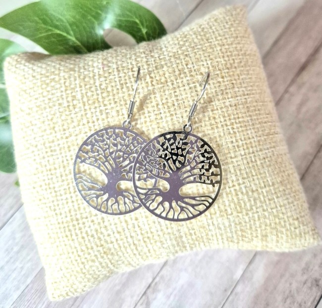 Boucles d'oreilles arbre de vie - 100% acier inoxydable argenté
