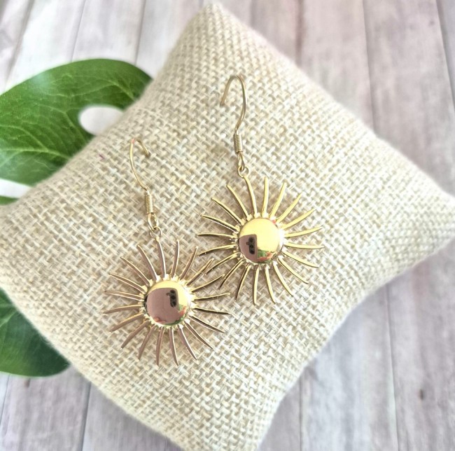 Boucles d'oreilles soleil - 100% acier inoxydable doré