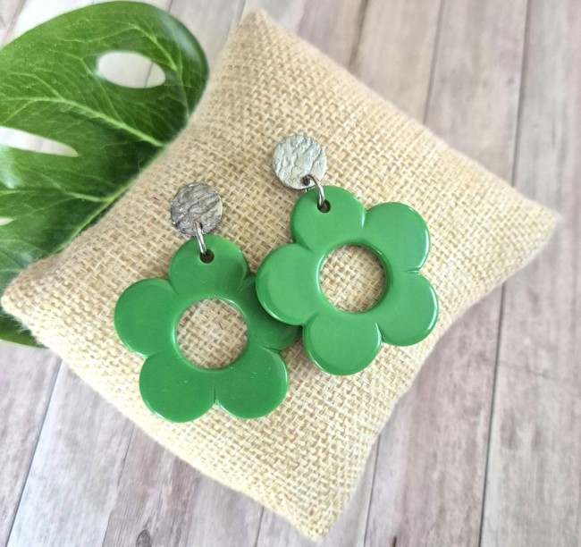 Boucles d'oreilles fleurs vertes en acrylique, clous en acier inoxydable argenté