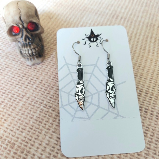 Boucles d'oreilles Halloween - couteaux tête de mort - crochets acier inoxydable