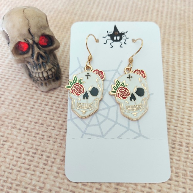 Boucles d'oreilles Halloween - têtes de mort décorées - crochets en acier inoxydable