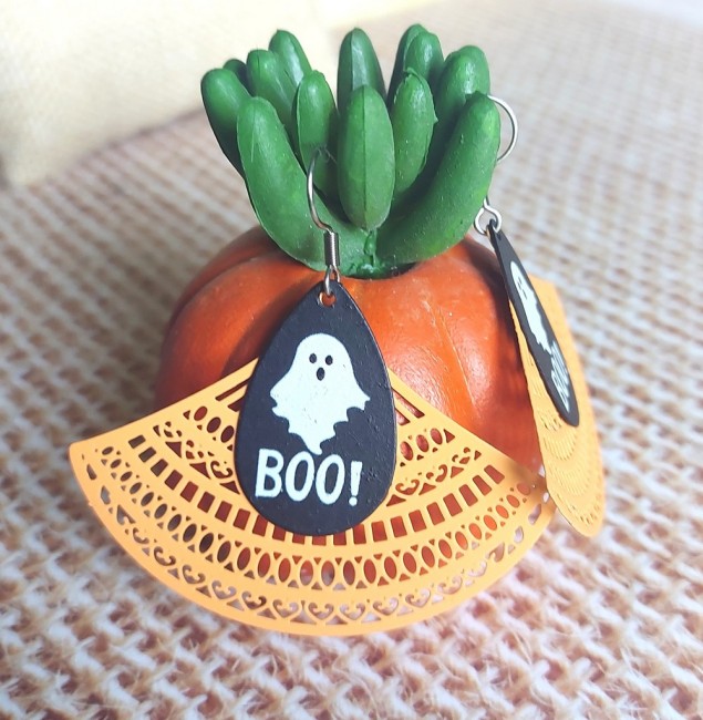 Boucles d'oreilles Halloween - fantômes BOO - crochets acier inoxydable