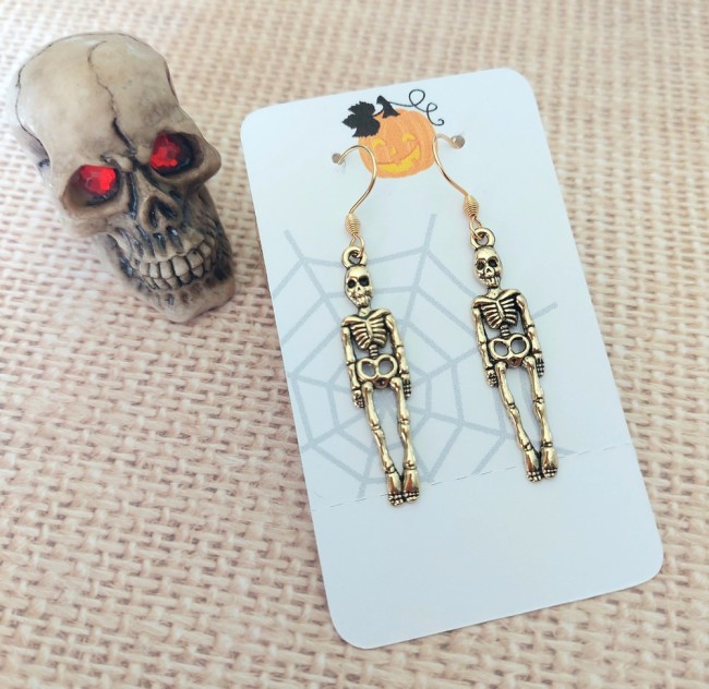 Boucles d'oreilles Halloween - squelettes dorés - crochets en acier inoxydable dorés
