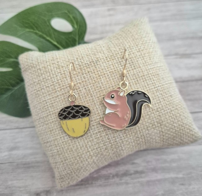 Boucles d'oreilles écureuil - noisette , crochets acier inoxydable