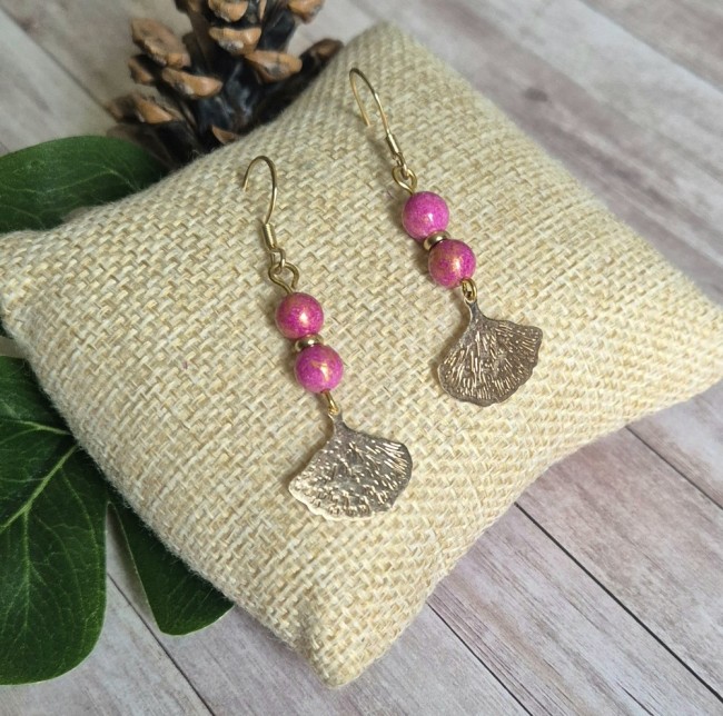 Boucles d'oreilles "feuille de ginkgo" , crochets acier inoxydable