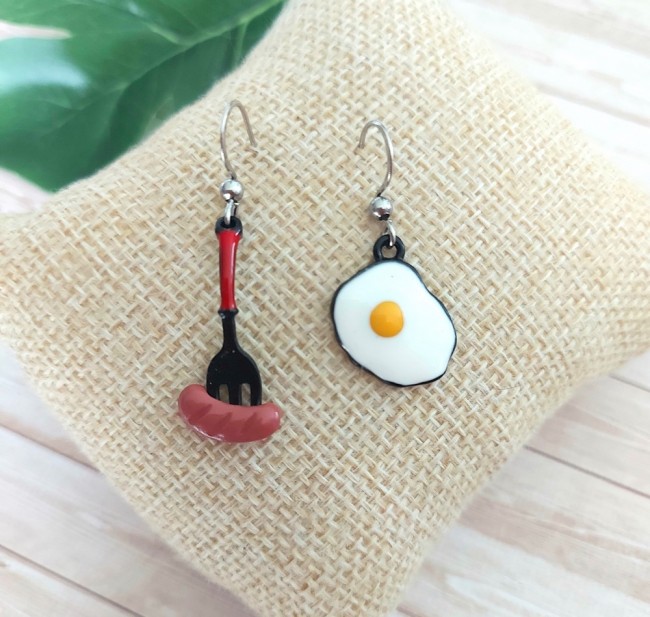 Boucles d'oreilles Oeuf-saucisse" - crochets en acier inoxydable argenté